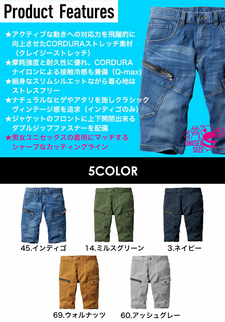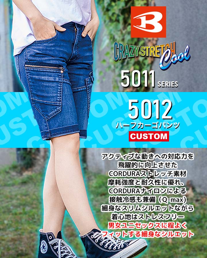 【P5倍★8/31まで】【即日発送】バートル ショートカーゴ ハーフパンツ 接触冷感 5012-CUT 限定カスタム品 春夏用デニム生地 男女兼用 ショートパンツ 半パン 半ズボン BURTLE