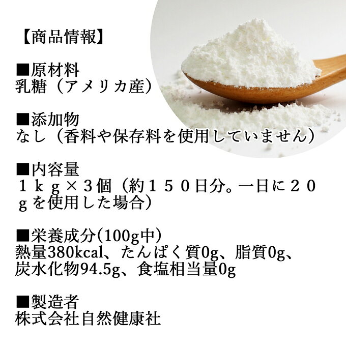 乳糖 1kg×3個 ラクトース オリゴ糖 粉末 無添加 100% パウダー 業務用 送料無料 サプリ サプリメント 母乳 乳酸菌 ビフィズス菌 善玉菌 プロバイオティクス プレバイオティクス 菌活 腸活 腸内フローラ 飲料 砂糖不使用 おすすめ お試し おためし ダイエット 健康 美容
