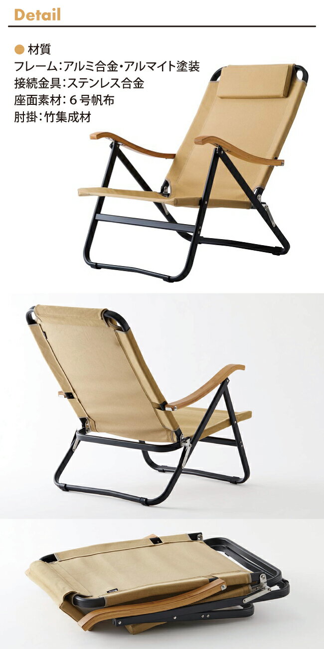メーカー希望小売価格はメーカーカタログに基づいて掲載していますSpec ブランド名 Onway/オンウエー 商品名 コンフォートローチェア メーカー型番 OW-61BD-BM サイズ ・使用時:約W60.5xD82xH75cm・収納時:約W60.5xD16xH72cm・座面高:約30cm・重 量:約3.5kg ・耐荷重:100kg※メーカーサイズ参照 カラー 詳細 ローチェアに自然素材を使用した豪華版。