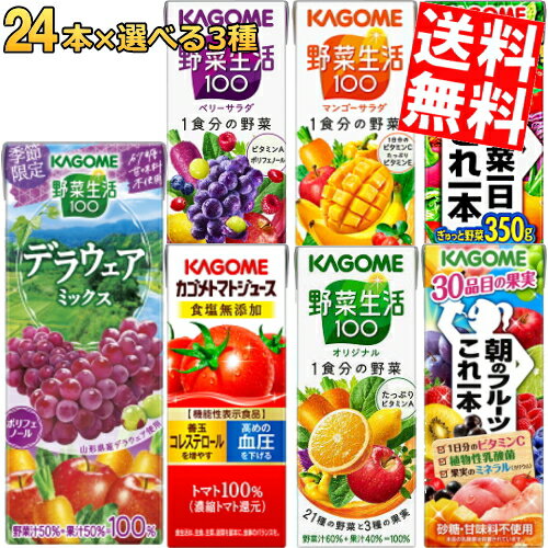 【送料無料】 カゴメ200ml紙パックシリーズ 選べる3ケース 計72本セット[ 野菜ジュース トマトジュース 野菜生活100 ]※北海道800円・東北400円の別途送料加算