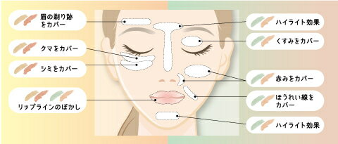 広範囲を補正するカラー6割と血色感を与えるカラーまたは肌色を整えるカラー4割の比率にすることで、肌の悩みをカバーしながらも効果的に肌色を補正します。