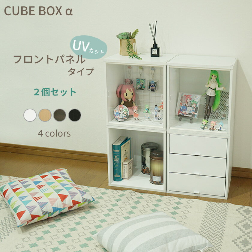 【2個セット】 紫外線カット アクリルふた付き コレクションケース キューブボックスα UVカット フロントパネルタイプ / フィギュア 収納 ディスプレイ 棚 フィギュアケース