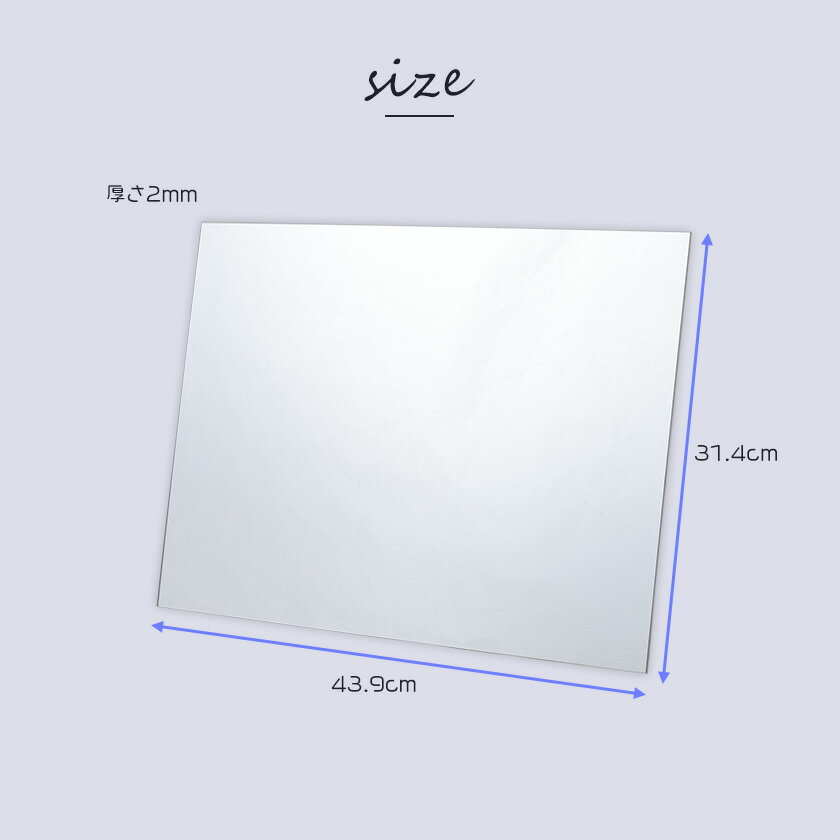 【商品仕様】 サイズ:幅43.9cm×高さ31.4cm 厚さ2mm 素材:アクリルミラー 重量(1枚あたり):約350g 【生産国】 日本 【組み立て】 完成品 本体への取り付けはお客様自身でお願いいたします。