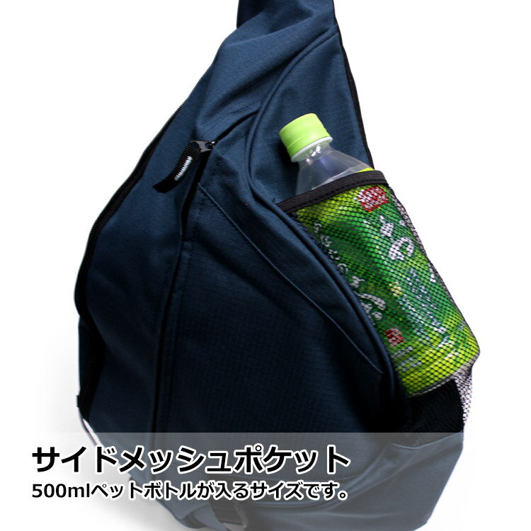 サイドのメッシュポケットは500mlペットボトルが入るサイズです。