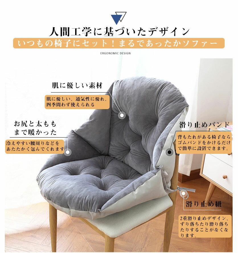 【送料無料】クッション 座布団 背もたれ付き 背あて 低反発 暖かい 洗える 折りたた チェアクッション 北欧 無地 座ぶとん 自宅やオフィス椅子用 シンプル 固定用ひも付き 椅子 オフィス 車内 床 ソファー チェアパッド 冬用 あったかグッズ 厚手 ふかふか プレゼント