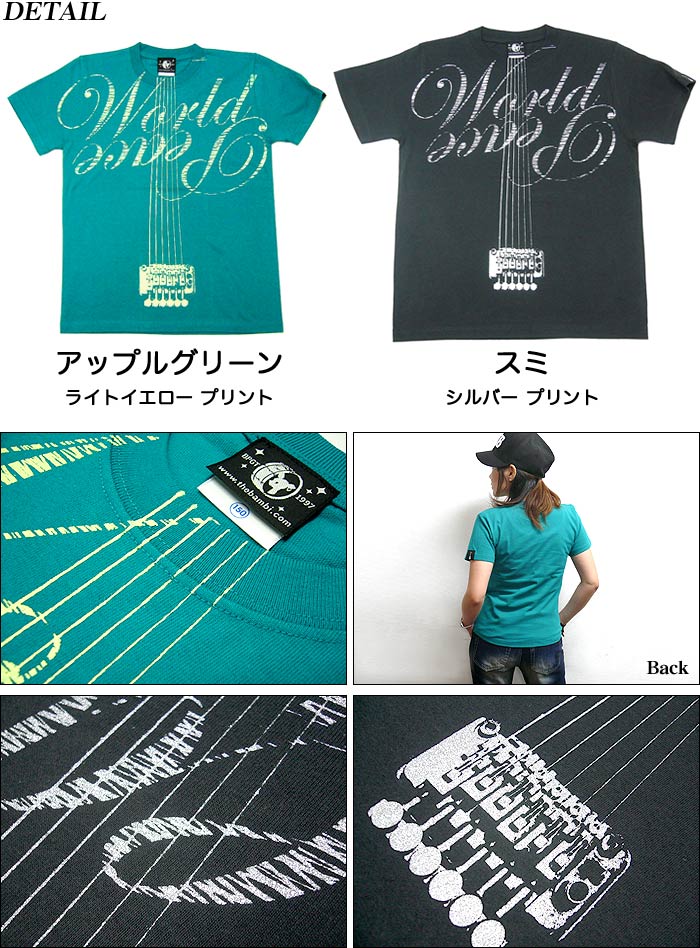 サマーセール!! WP Tシャツ - BPGT sp073tee-Z完- 音楽 世界と平和 ギター柄 半袖 ロックTシャツ ROCK ストリート バンドTシャツ おしゃれ かっこいい メンズ レディース ペア ユニセックス 大きいサイズ スミ グリーン 灰色 緑色 コットン綿100% 【RCP】