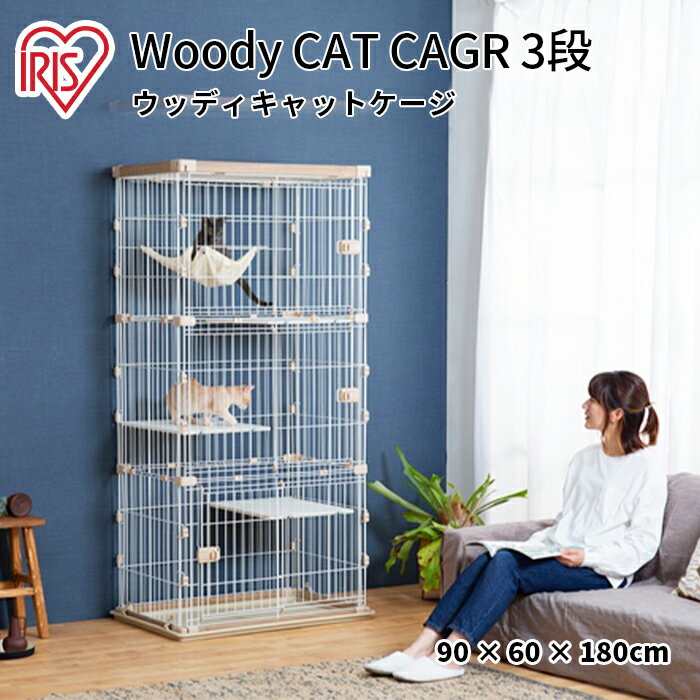 【今だけP5倍】【アイリスオーヤマ】ウッディキャットケージ3段 PWCR-963ホワイト ナチュラル 猫 ケージ ペット用品 キャットゲージ ハウス 室内飼い 猫ケージ 猫ゲージ ねこケージ ねこゲージ スリム コンパクト ハンモック