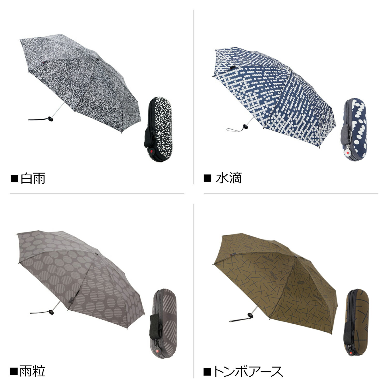 グラスファイバーを使用した柔軟性のある親骨、コンパクトにまとまる薄手の撥水生地を使用しています。